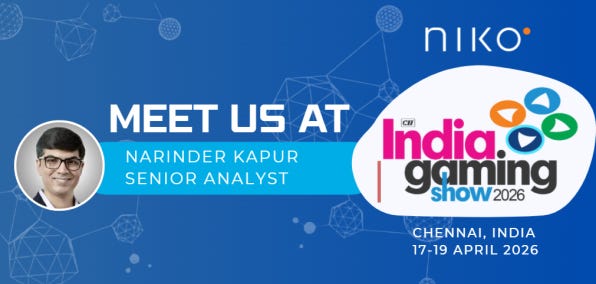 Niko’s Senior Analyst & Global Business Development Narinder Kapur will be attending the India Gaming Show in Chennai from April 17–19. We’re looking forward to connecting on the ground and taking the pulse of one of the world’s fastest-growing video game markets. Please say hi if you’ll be there as well!